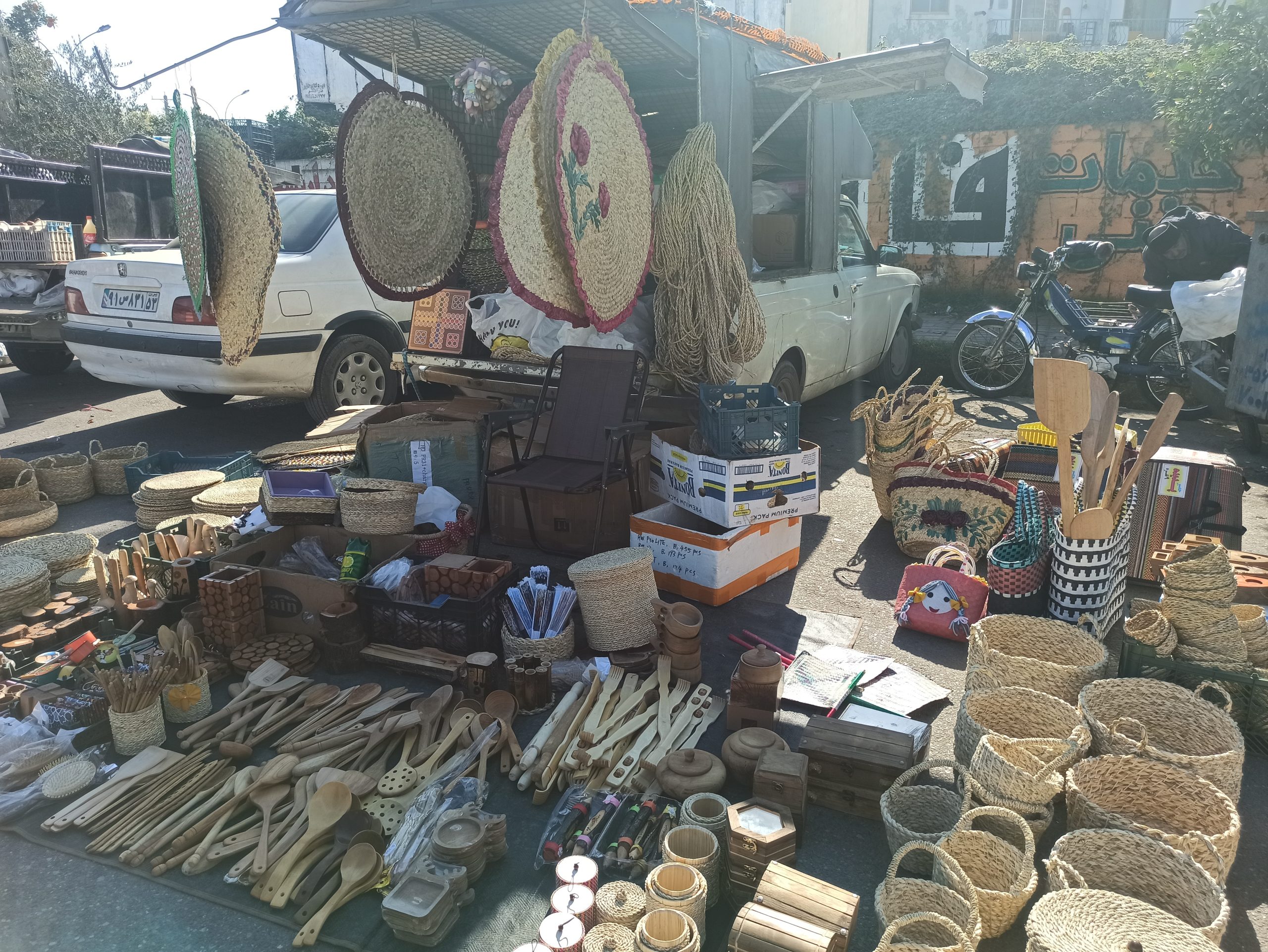 ترشیجات، انواع مربا، سبزیجات، میوههای فصل، انواع ماهی، لبنیات، پوشاک، وسایل خانگی و غیره از محصولاتی هستند که در این بازار محلی به چشم میخورد.
